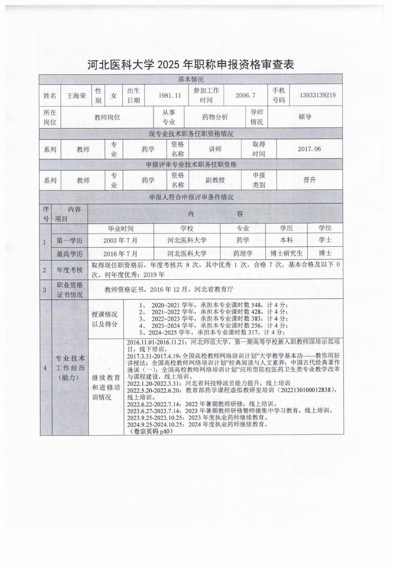 专业技术职务任职资格情况一览表-王海荣