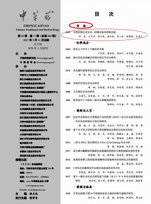 天然药物化学教研室和中草药杂志社。