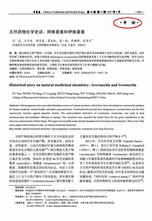 《天然药物化学史话:阿维菌素和伊维菌素》(本室编写)